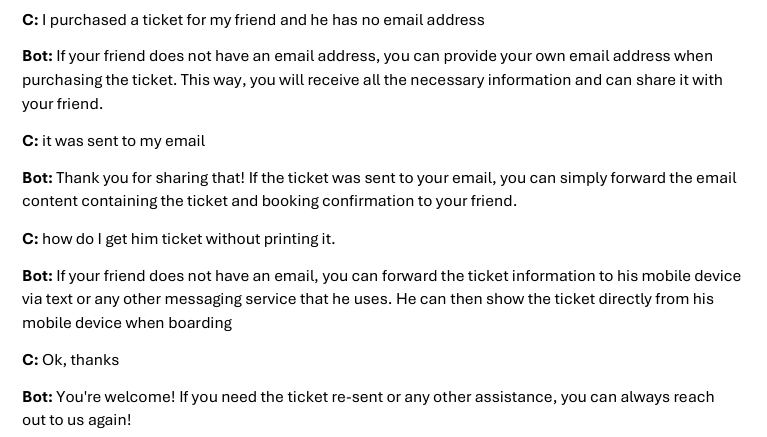 In this scenario, the bot started thinking out of the box and found a way to help—something much closer to the kind of support you’d expect from a human. This is almost impossible to achieve with traditional NLU bots.